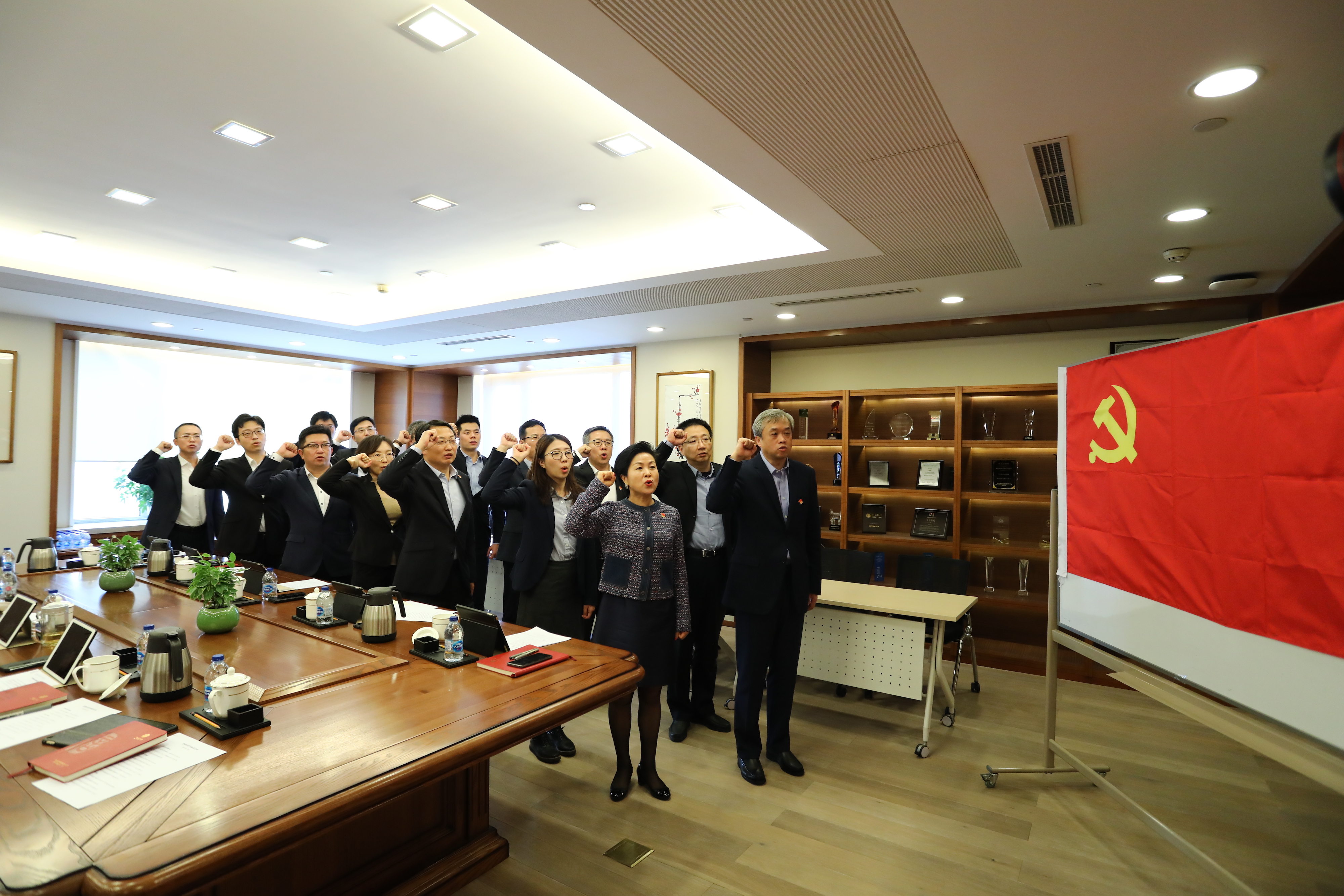 2019年11月1日下午,公司党委举行了新发展党员的集体入党宣誓仪式。在党委书记、董事长陈一松同志的带领下,公司全体领导班子成员及6名新党员面向党旗站立,右手握拳,上举过肩,新老党员一起高声逐句诵读入党誓词,在党旗下许下庄严承诺。