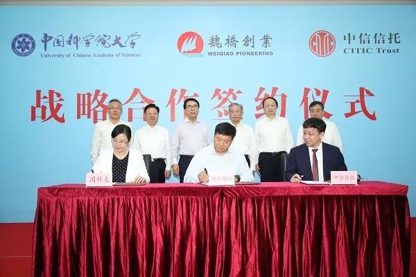 8月31日,中信信托与中国科学院大学(简称“国科大”)、山东魏桥创业集团有限公司(简称“魏桥创业”)、山东宏创铝业控股股份有限公司签署战略合作协议,共建创新研究院,旨在打造开放科研平台,促进科研成果转移转化,并且整合全球资源,在新兴技术发展和探索产学研合作机制中发挥引导、示范作用。