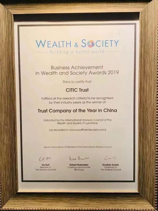 这些努力也为中信信托赢得了广泛的社会认可,中信信托收获了包括监管部门、主流媒体和学术机构分别授予的“全国法治宣传教育先进单位”、“中国金融500强”、“年度最具影响力信托公司”、“中国优秀信托公司奖”、“年度金牛集合信托公司奖”等众多奖项。