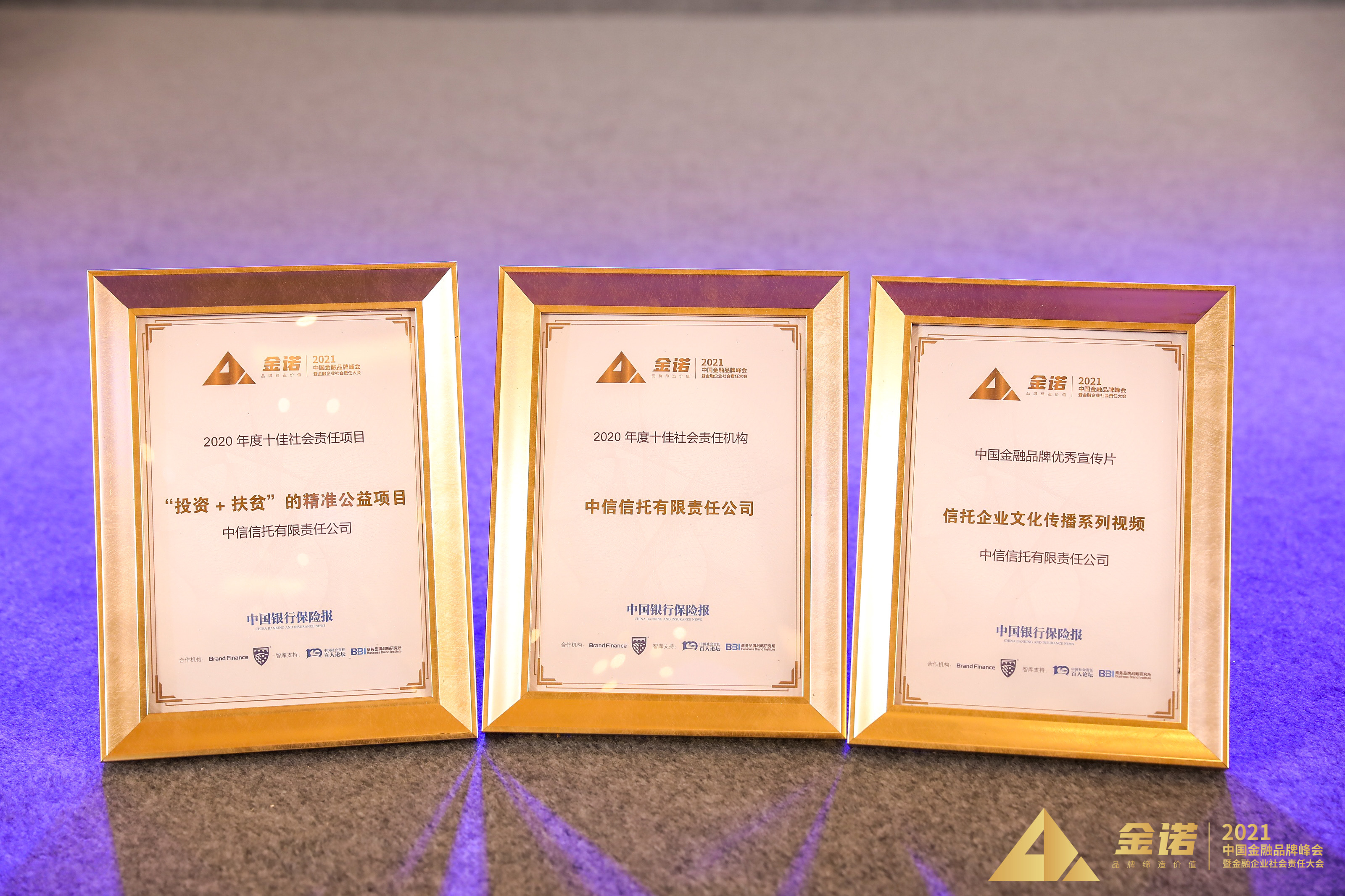 5月8日,由中国银保监会主管的唯一日报《中国银行保险报》举办的“2021中国金融品牌峰会暨金融企业社会责任大会”在江苏苏州隆重举行。中信信托凭借对中信企业文化的传播以及长期在社会责任方面的贡献,荣获“2020年度十佳社会责任机构”、“2020年度十佳社会责任项目”以及“中国金融品牌优秀宣传片”三大奖项。
