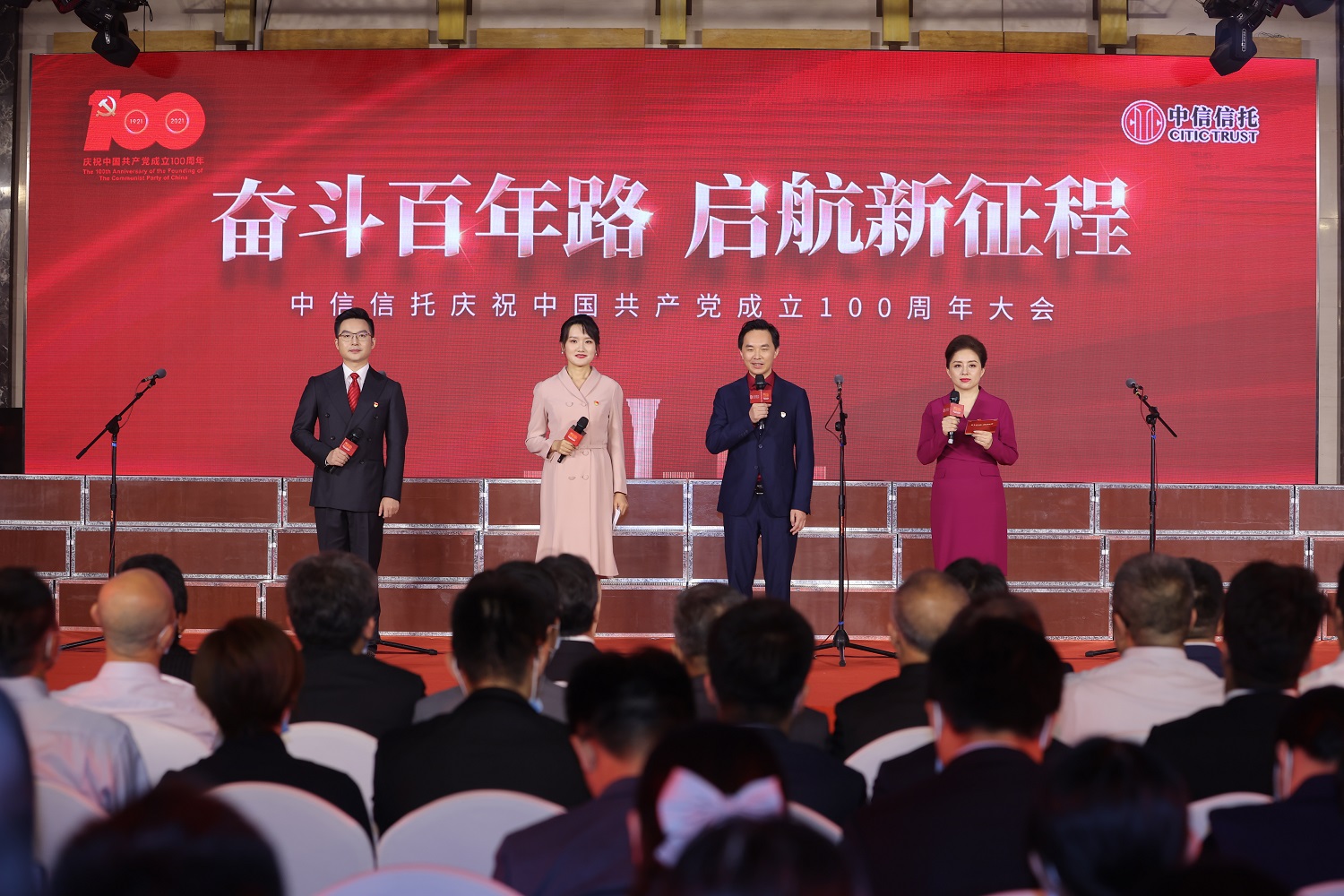 2021年6月29日下午,中信信托党委围绕“奋斗百年路,启航新征程”主题,召开庆祝中国共产党成立100周年大会,表彰党建先进,见证入党宣誓,学习百年党史,吟唱红色经典,以实际行动庆祝建党一百周年。公司全体党员、子公司领导班子成员以及受表彰人员等共计400余人参加了会议。