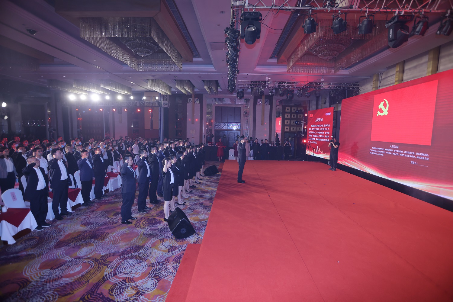 在入党宣誓环节,20名新党员在公司党委书记李子民同志的领誓下庄严宣誓,现场400余名党员共同重温入党誓词,铿锵有力的宣誓声响彻整个大厅。宣誓环节过后,李子民同志还为每位新党员颁发了政治生日贺卡。