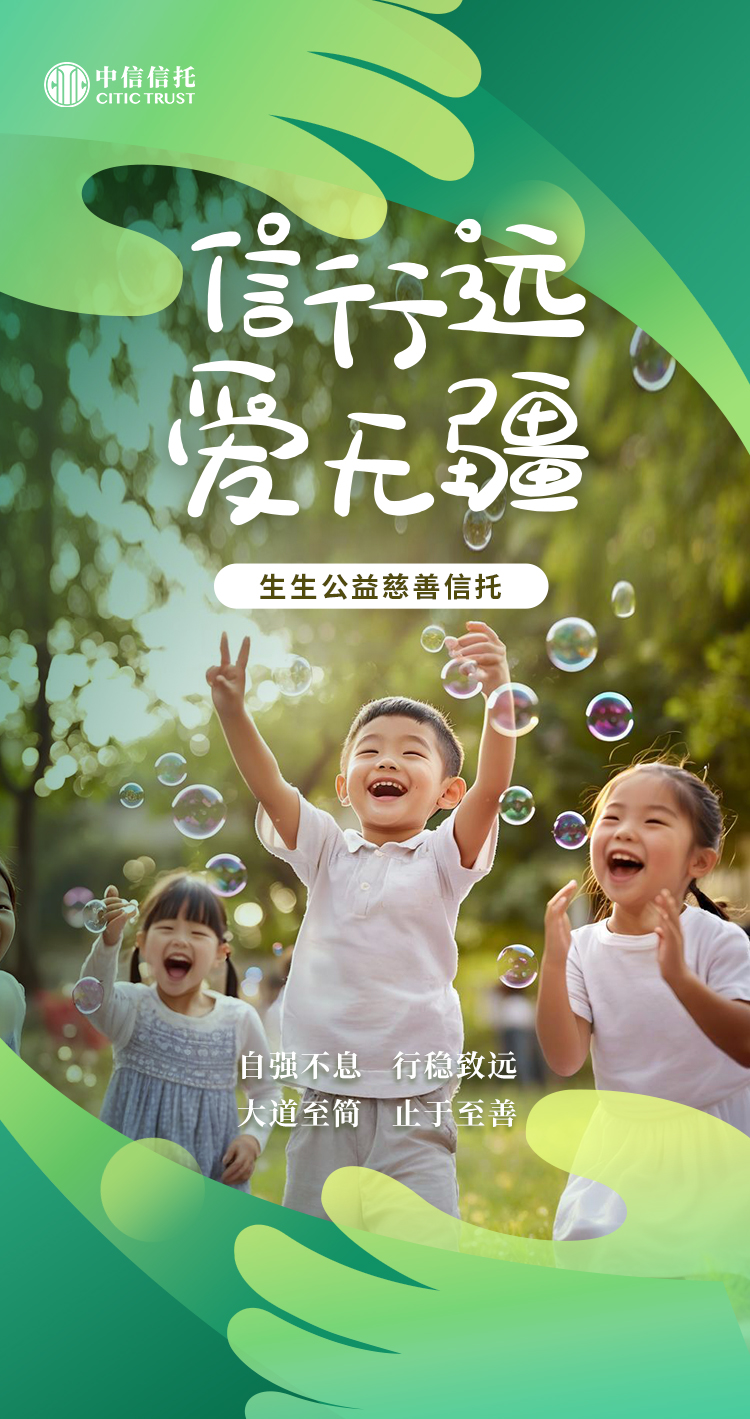 生生公益慈善信托的落地,是公司落实中信集团部署的切实举措,也是公司企业家办公室提供“人-家-企-社”服务中“社”的维度下的有益探索和实践。作为“信托+公益”领域的先行者,中信信托始终秉持“信行远,爱无疆”的慈善理念,倡导 “财富向善”,不断发掘和创新慈善信托的业务模式和功能定位,引导更多的社会财富通过慈善信托助力人民群众实现美好生活。
