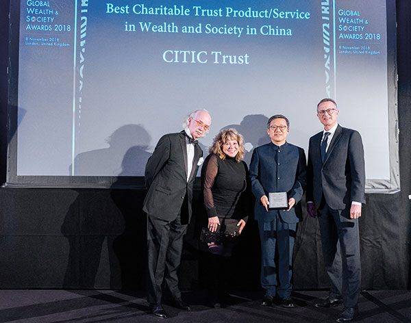“2018年全球财富与社会奖项”于日前揭晓,中信信托荣膺“中国最佳信托公司”和“中国最佳公益慈善信托”两项荣誉,这也是中国信托公司的品牌和产品首次获得此类国际奖项的认可。中信信托常务副总经理王道远代表公司出席会议并领奖致辞。