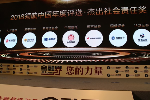 12月13日,由金融界网站发起举办的“2018金融界领航中国年度评选”榜单揭晓,中信信托获得“2018领航中国年度评选杰出信托公司奖”,并作为唯一的信托公司代表荣获“2018领航中国年度评选杰出社会责任奖”。中信信托总监吴志凌代表公司出席并领奖。