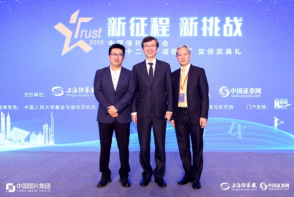 近日,由《上海证券报》主办的2019中国信托业峰会暨第十二届“诚信托”颁奖典礼在上海举行。中信信托凭借雄厚的综合实力和在支持实体经济方面的突出贡献,继续摘得该评选最高奖项——“诚信托·卓越公司”奖;同时,“中信信托-睿信稳健配置TOF金融投资集合资金信托计划”获评“诚信托·最佳证券投资信托产品奖”。中信信托副总经理刘寅出席峰会并代表公司领奖。
