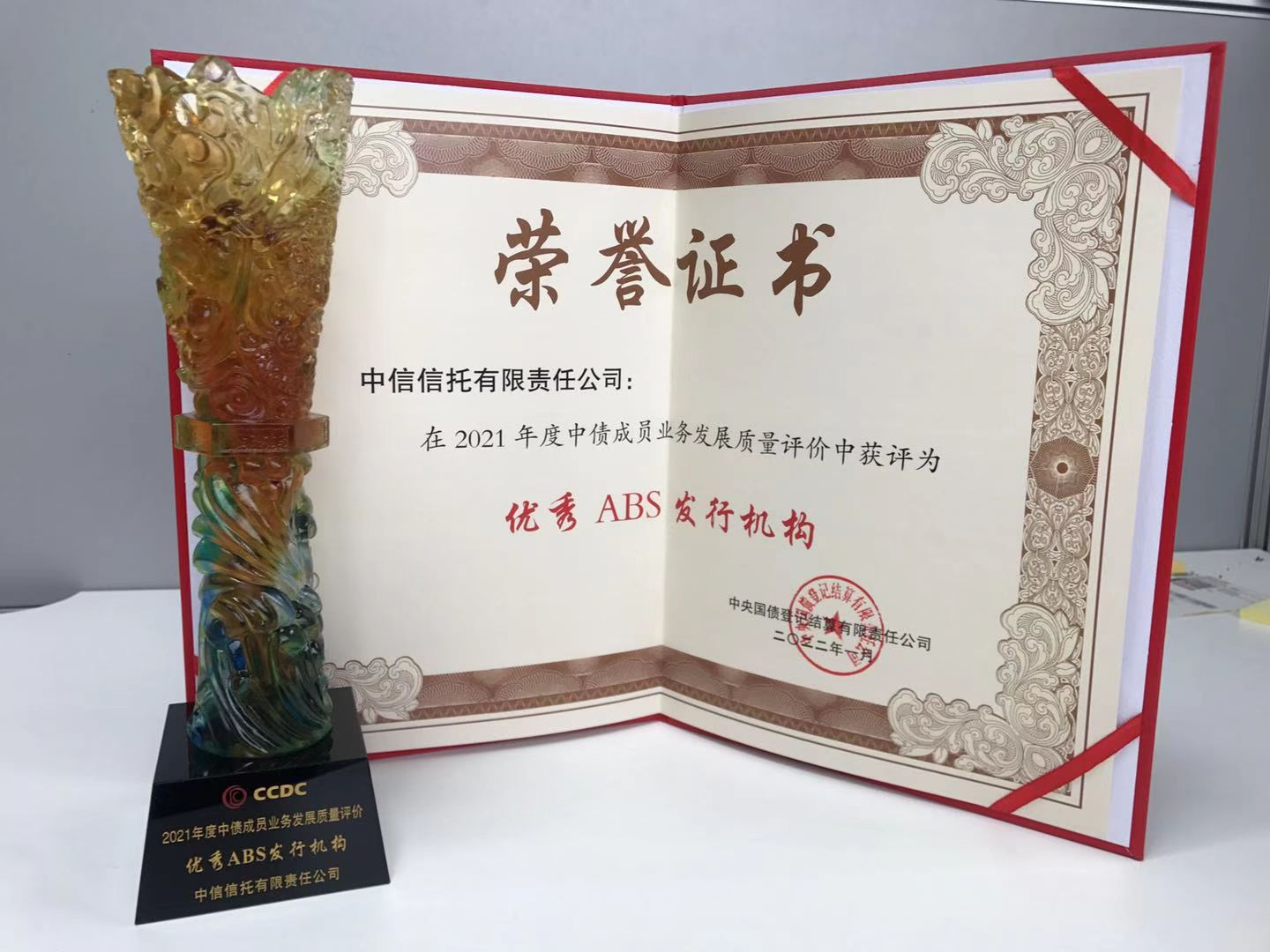 近日,中信信托凭借2021年在资产证券化业务中的优异表现,蝉联中央国债登记结算有限责任公司(以下简称中债登)颁发的“优秀ABS发行机构”。
