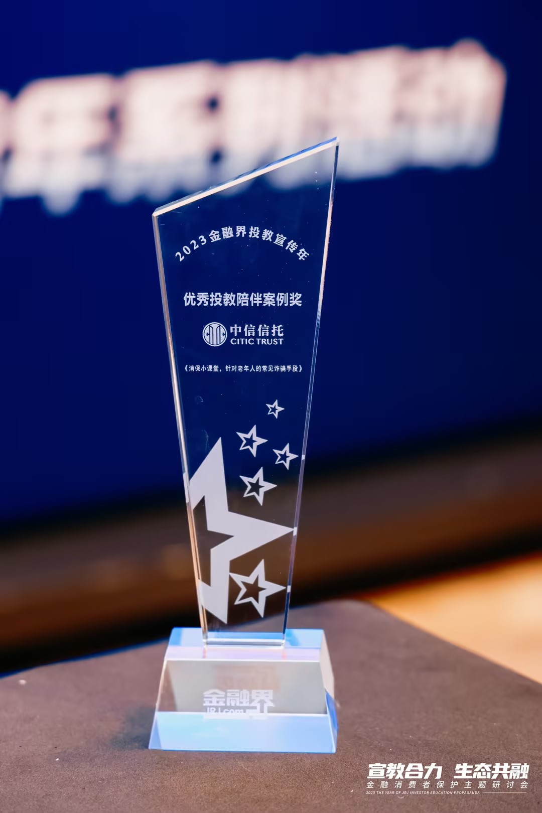 日前,由金融界主办的“宣教合力 生态共融”金融消费者保护主题研讨会在京举办。中信信托获得“2023金融界投教宣传年优秀投教陪伴案例奖”。