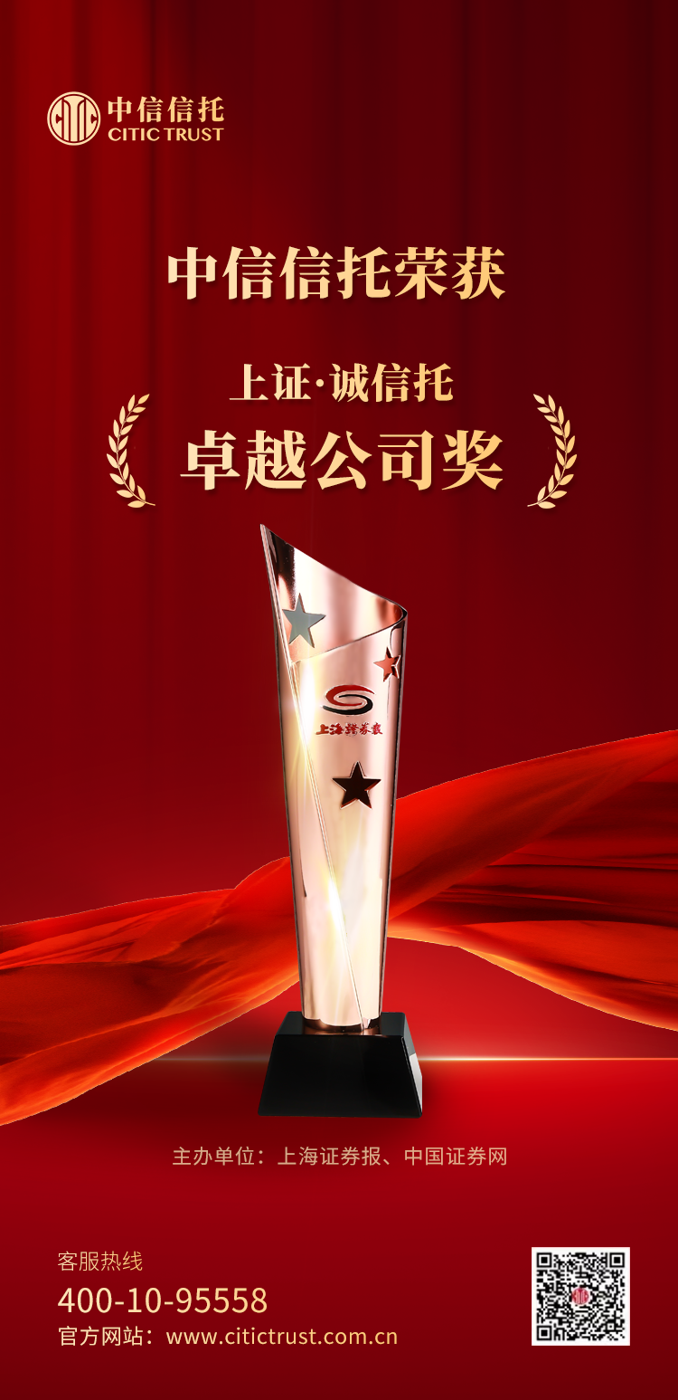 2023年12月30日,由上海证券报、中国证券网主办的第16届“上证·诚信托”奖项评选结果正式揭晓。中信信托再度荣获卓越公司奖,这也是公司第七次在该类评选中获此殊荣。