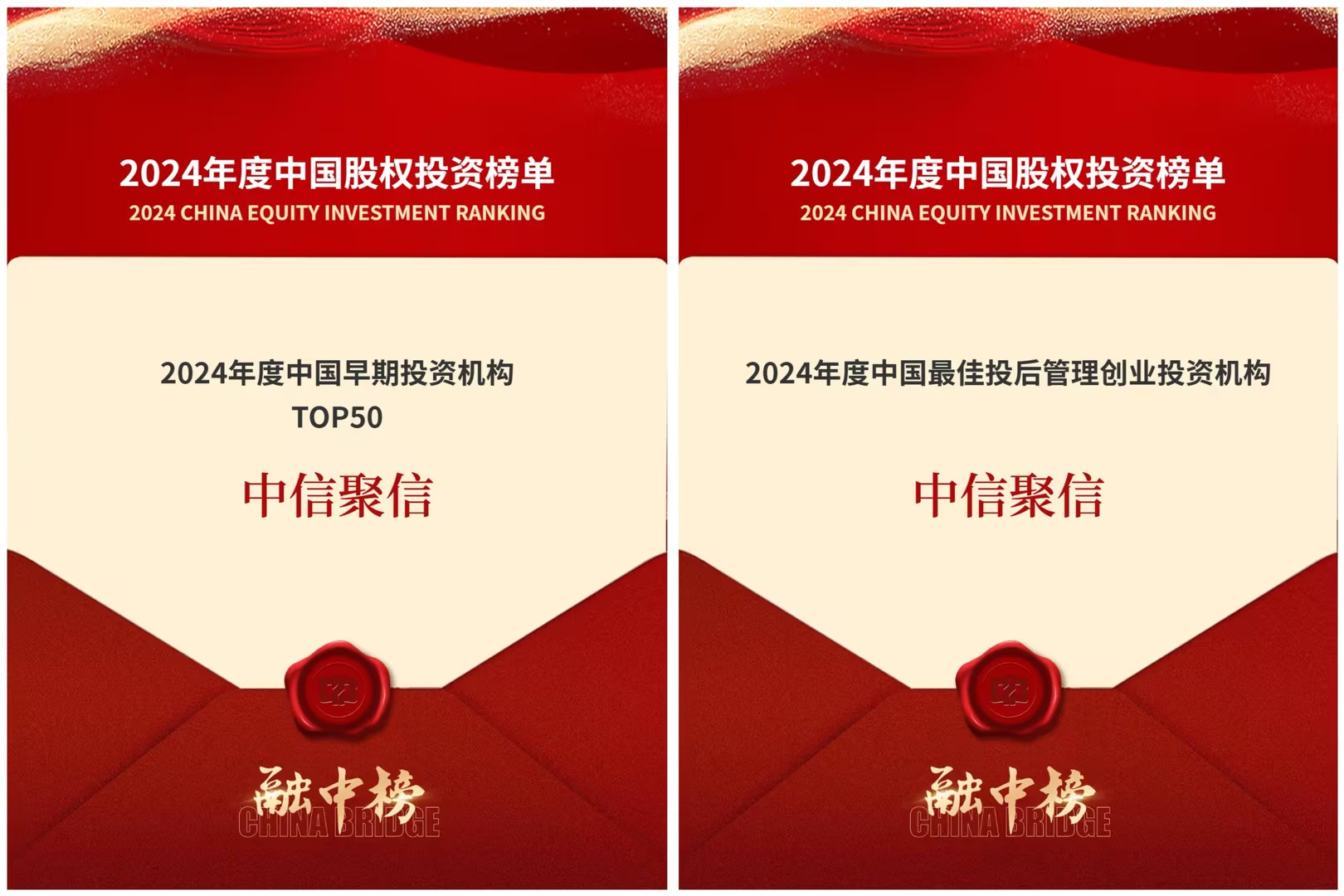 1月17日,融中2025(第14届)中国资本年会在北京举办,“融中2024年度中国股权投资榜单”正式发布。中信信托旗下全资股权投资平台——中信聚信(北京)资本管理有限公司,凭借其在私募股权投资及先进制造投资领域的稳健卓越表现,荣获“2024年度中国早期投资机构TOP50” “2024年度中国最佳投后管理创业投资机构”两项殊荣。这是在连续四年获评融中产业榜单后,中信聚信首次跻身融中早期投资机构TOP50综合排名。
