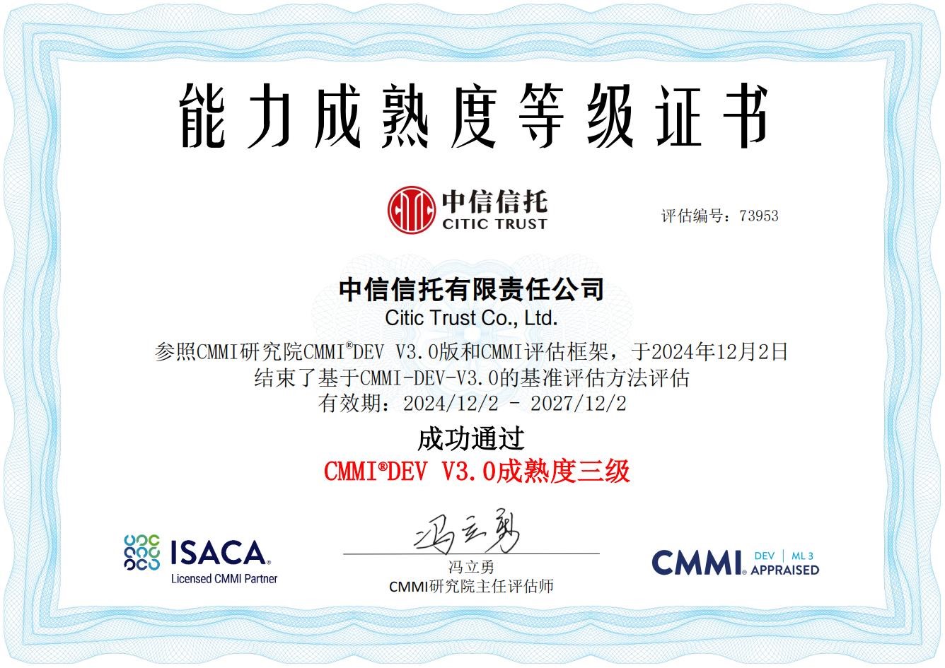 近年来,中信信托持续提升自主研发能力,在财富管理业务、家族信托业务、普惠金融业务、特殊资产服务信托等领域打造业务创新能力。,并于2022年5月底顺利通过测试成熟度模型集成TMMi3级认证,本次通过软件能力成熟度模型CMMI3级认证,标志着中信信托系统研发能力和管理水平迈上了一个新台阶。
