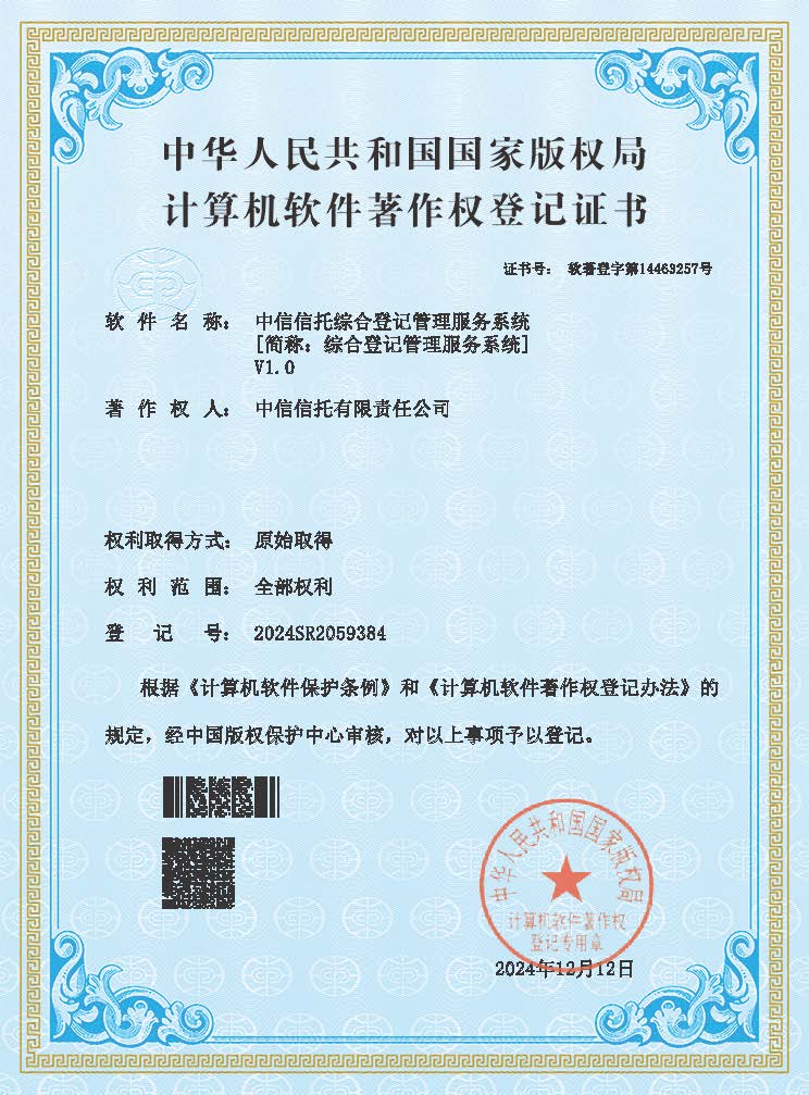 近日,公司自主研发的综合登记管理服务系统成功上线,并获国家版权局软件著作权证书,这是公司在权益份额登记系统信息化建设方面取得的又一项重要成果。随着信托三分类新规落地,公司新型业务快速发展,对权益份额登记系统的登记工作提出更高要求,包括慈善信托、特殊需要服务信托、薪酬递延等新业务的登记、交易、分配等均有差异化需求。