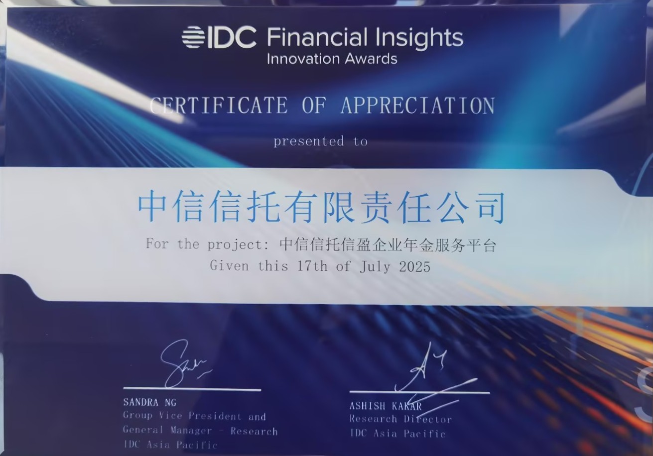 此次获奖是行业对信盈企业年金服务平台数字创新成果与示范效应的高度认可。未来,中信信托将立足做好金融“五篇大文章”,持续深化金融科技与养老金业务的深度融合,不断迭代平台功能、升级服务体验,进一步输出数字化转型实践经验,助力养老金业务迈向智能化、特色化、生态化高质量发展新阶段。.jpg)