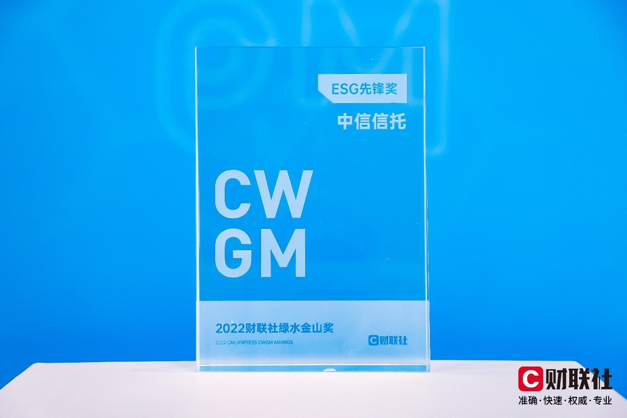 12月22日,财联社在北京举办“中国ESG金融峰会暨2022财联社‘绿水金山奖’金融业颁奖典礼”,中信信托有限责任公司(下称中信信托)荣获2022财联社绿水金山奖ESG先锋奖。