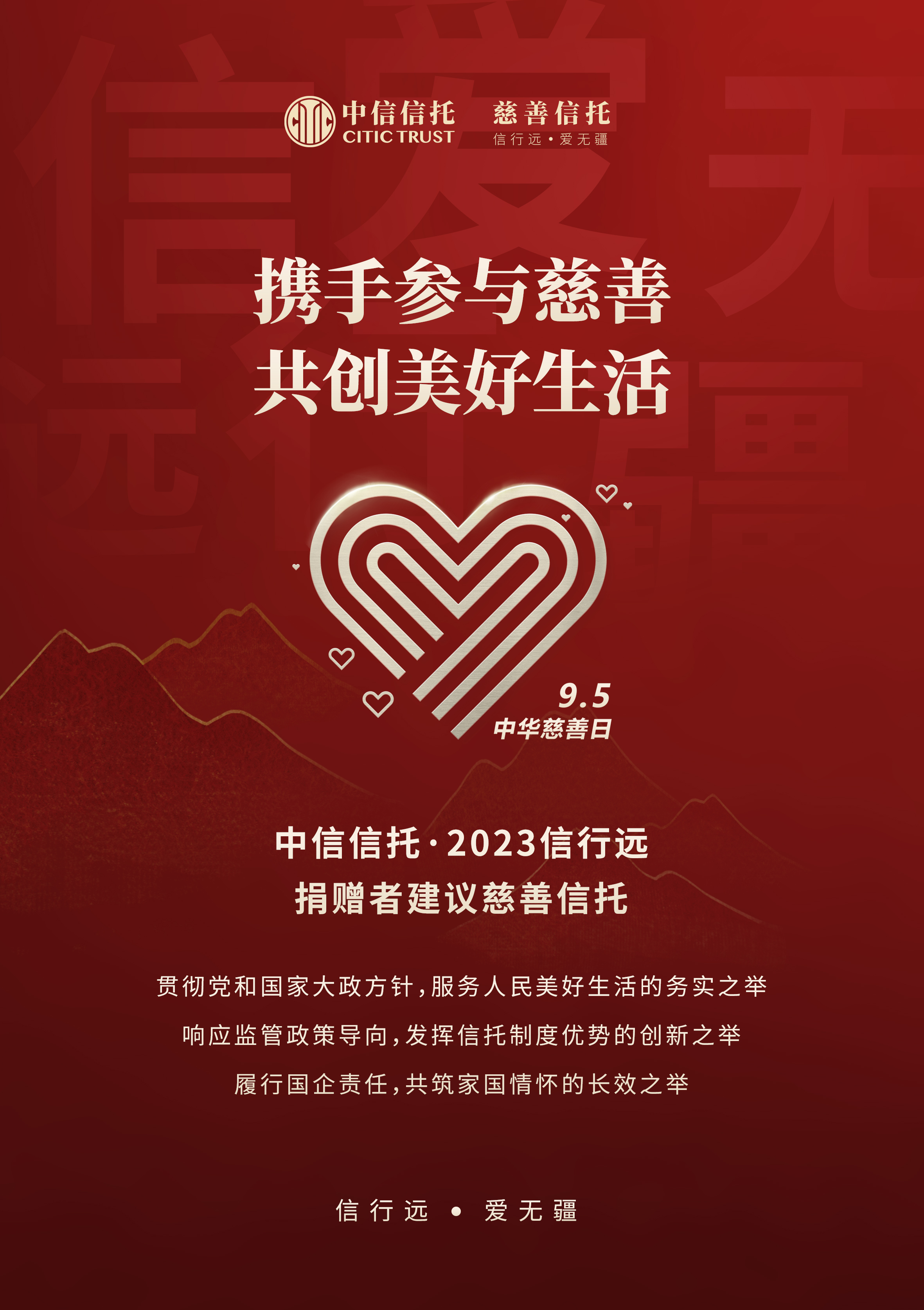 为深入贯彻落实党的二十大关于“引导、支持有意愿有能力的企业、社会组织和个人积极参与公益慈善事业”的精神,在《慈善法》修订和信托业务分类新规落地的背景下,中信信托立足丰富的慈善信托管理经验,不断探索慈善信托发展新模式。《慈善法》颁布七周年前夕,“中信信托·2023信行远捐赠者建议慈善信托”(以下简称信行远慈善信托)在北京市民政局指导下备案成功。
