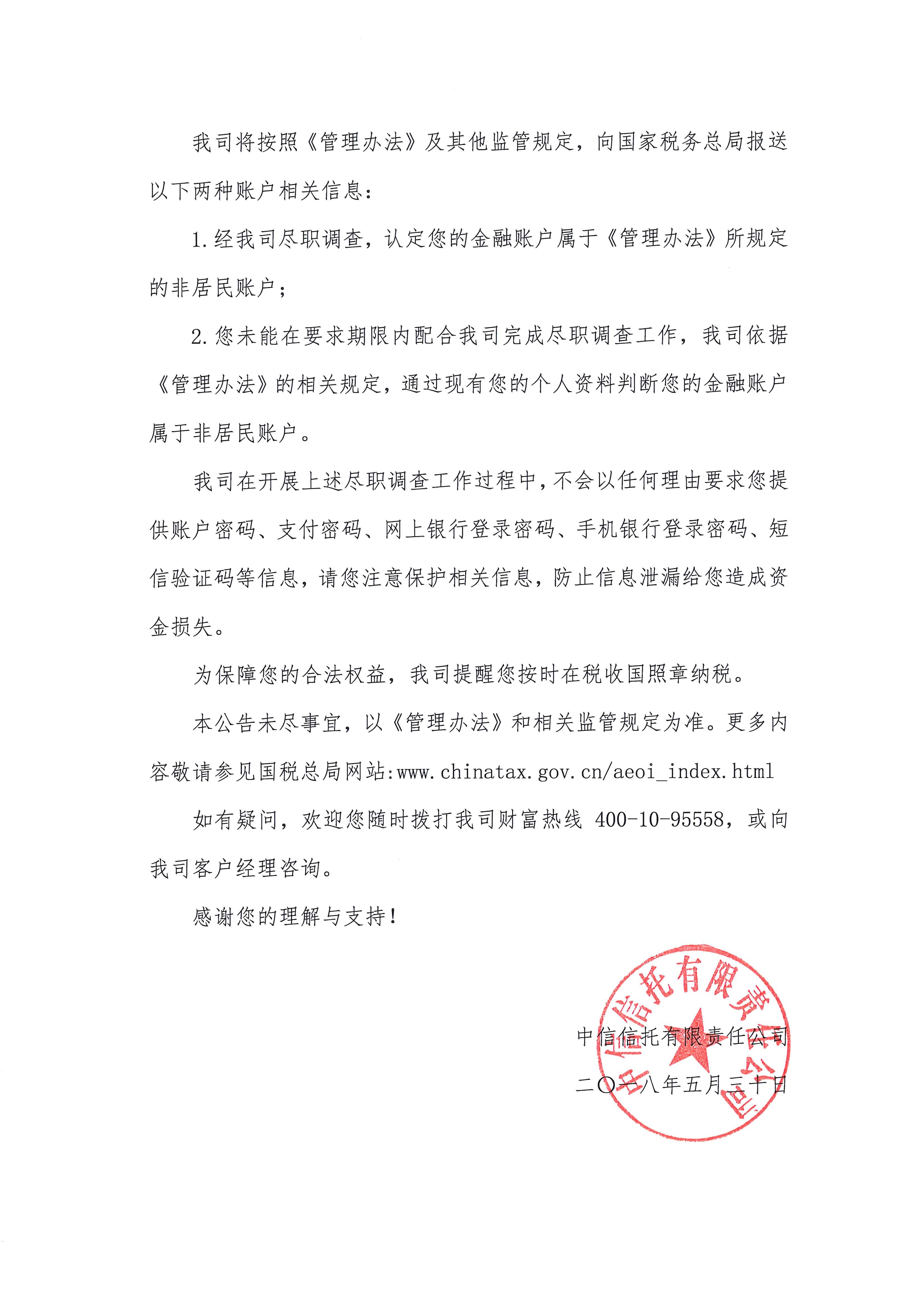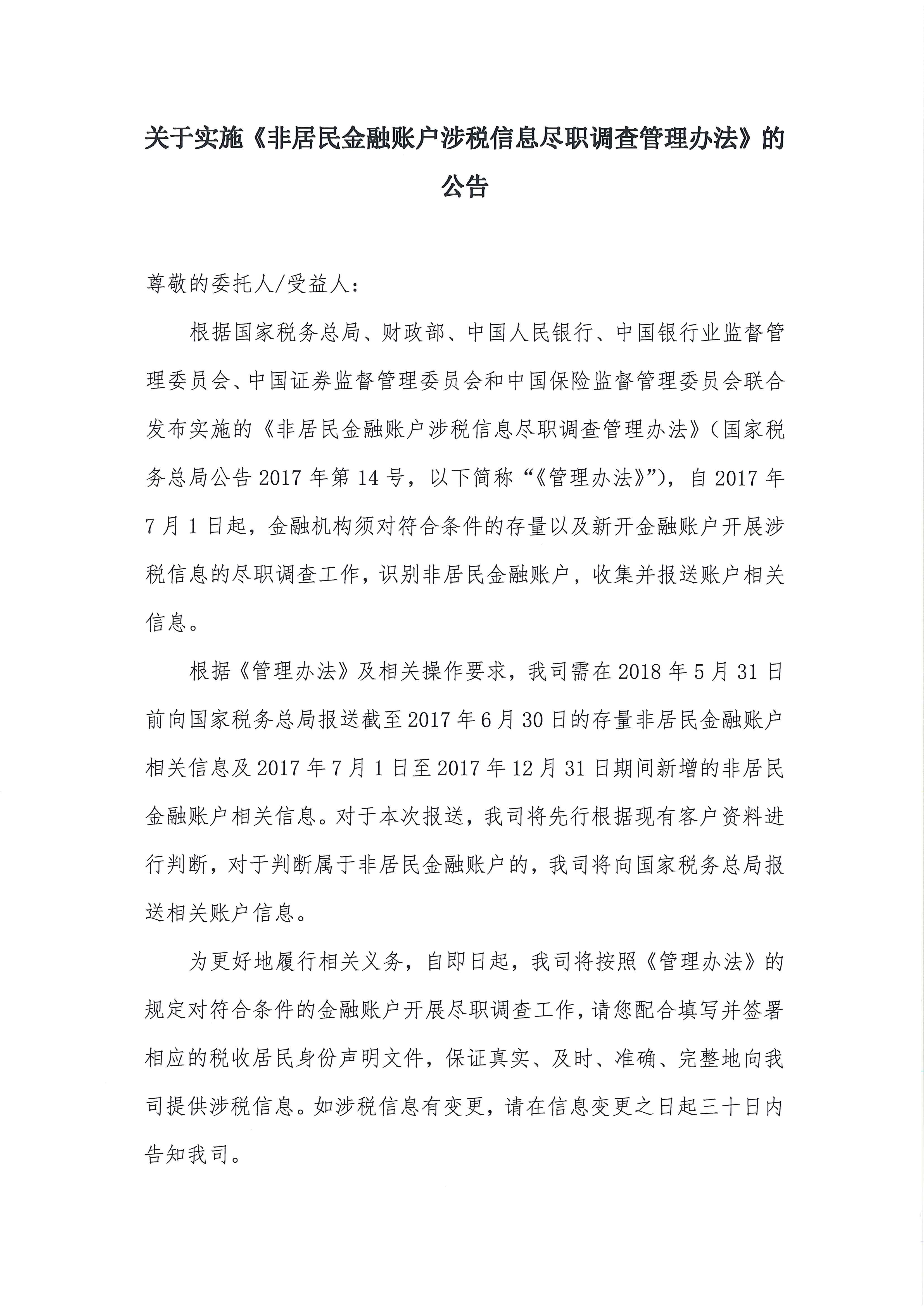 关于实施《非居民金融账户涉税信息尽职调查管理办法》的公告