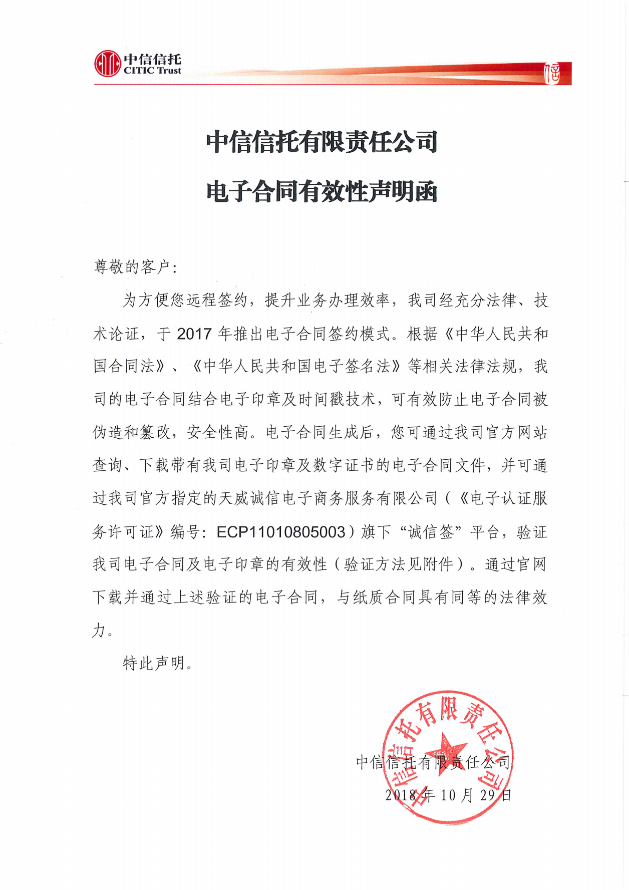电子合同有效性声明函